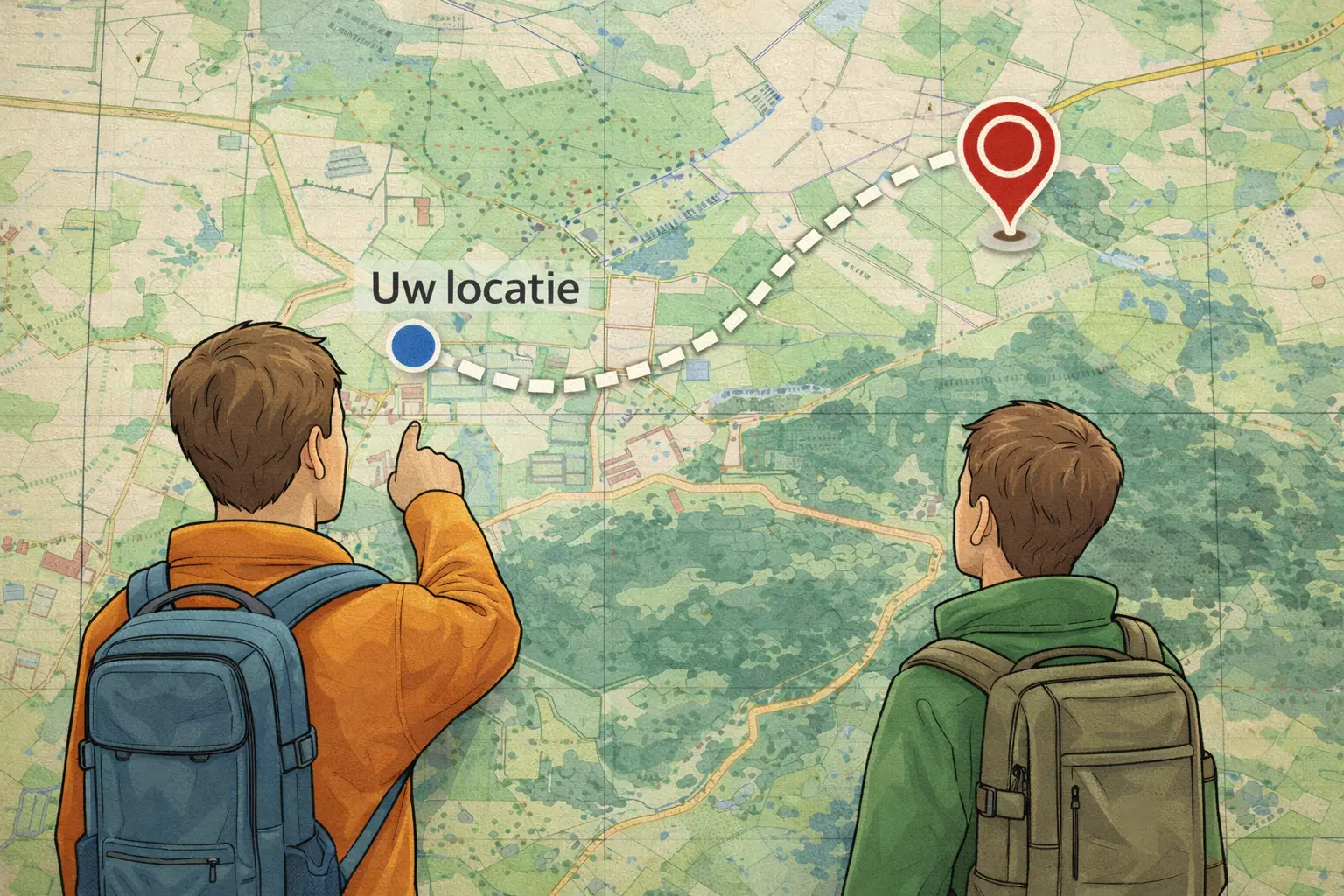 In onderstaand voorbeeld zoeken we dit coördinaat op op de kaart.