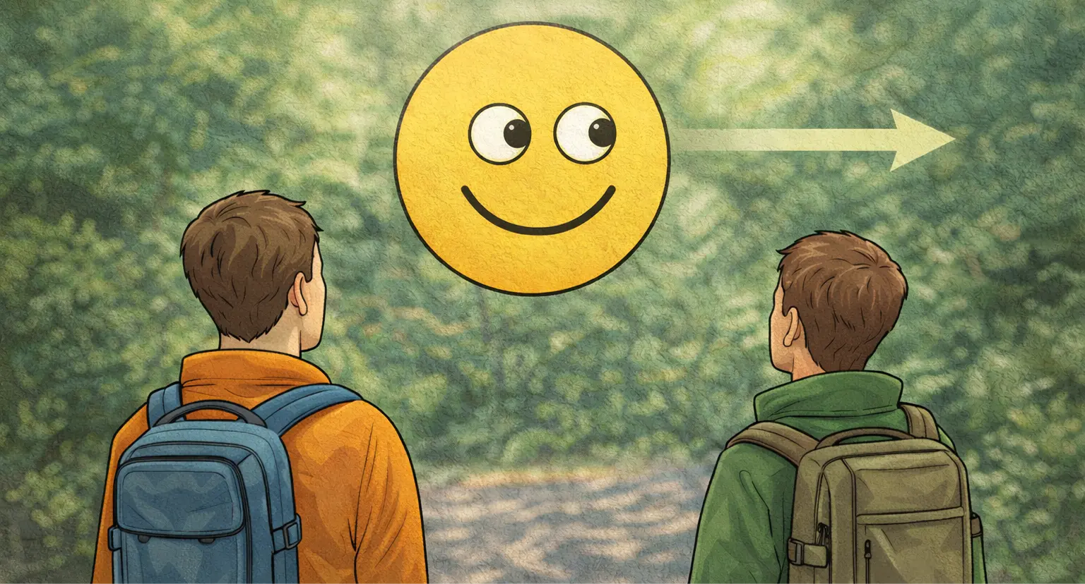 Bij dit onderdeel zullen de deelnemers een smiley te zien krijgen met ogen die een bepaalde kant op kijken. De richting waar de ogen heenkijken is de richting waarin de route vervolgd dient te worden.